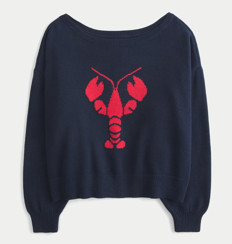 The lobster sweater is only the beginning. Elsewhere in shoppable lobster-themed fashion, Google Trends surfaced keen search interest in the past month for lobster skirt, lobster tote, lobster bikini, lobster pajamas and for the “viral lobster beaded bag.”